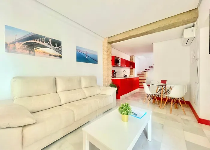 The 1-room Philippe'S Home Triana Con Terraza Seville apartment offers easy access to such tourist sites as the office skyscraper "Sevilla Tower", located nearly 5 minutes' walk away. Staying in this spacious apartment, nestled 0.7 km from the metal Puente de Isabel II Arch Bridge, guests can relax on a terrace.